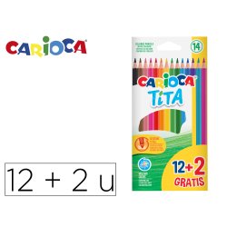 Lapices de colores carioca tita hexagonal 12 unidades colores surtidos + 2 gratis