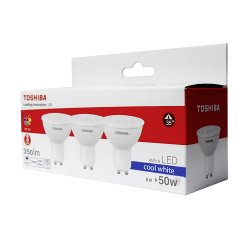Pack 3 bombillas LED Toshiba dicroicas GU10, 5W, luz cálida