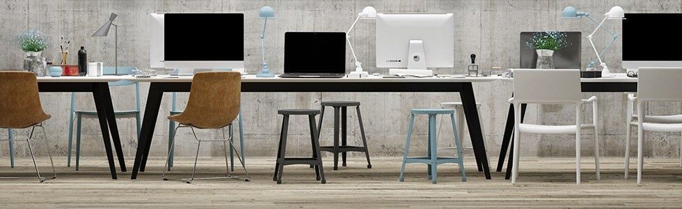 Es importante tener en cuenta el efecto luminancia, es decir, cómo la luz se refleja en su superficie. Dependiendo de las características del espacio de trabajo, el deslumbramiento puede dificultar la concentración y causar fatiga visual. Para oficinas con mucha luz, es recomendable optar por superficies como la madera o el metal, siempre que este sea oscuro y mate. En espacios con poca luz, es mejor elegir colores claros como blanco lacado, haya o roble, que ayudan a difundir la luz y mejorar la iluminación general del área de trabajo.