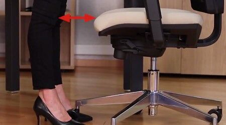 Regula la profundidad del asiento accionando la palanca situada bajo la silla. El ajuste será idóneo cuando puedas colocar cuatro dedos entre la silla y la parte posterior de tus rodillas.