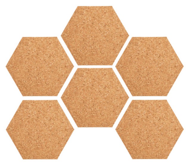 Diseño modular y decorativo: Los tablones hexagonales de corcho natural de Bi-Office combinan funcionalidad y estética, permitiendo crear superficies personalizadas que se adaptan a cualquier espacio.