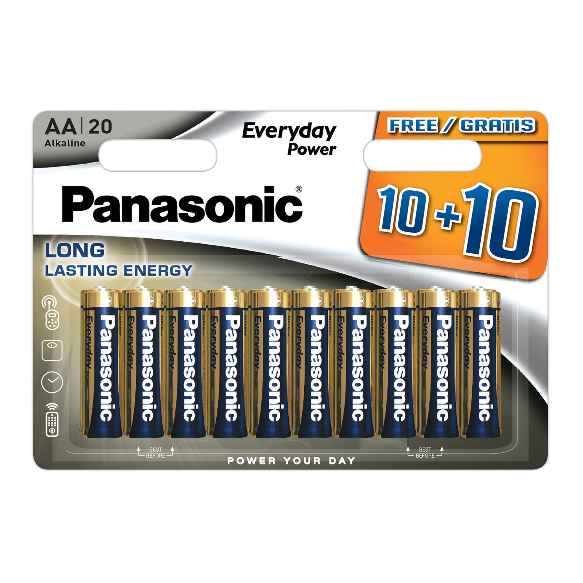 Descripción detalladaBlíster de 20 pilas alcalinas 10+10 GRATIS AA/LR6 o AAA/LR3 Everyday Power PanasonicVoltaje 1,5 V. Energía avanzada y duradera. Poder cotidiano. Potencia tu día.