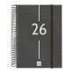 Agenda de espiral de estilo urbano y colores a la moda. Con tapas de polipropileno y goma elástica. Con esquinas microperforadas para localizar rápidamente el día/semana en curso.