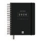 La agenda es de tapa dura de polipropileno, con espiral doble, goma elástica y dispone de dos cintas punto para poder acceder rápidamente a las secciones que desees.