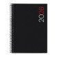 Agenda espiral City dia página Catalán 15,5 x 21,3 cm Polipropileno negro Miquelrius. Tamaño: 155 x 213 mm. Papel: Extra opaco 80 g/m². FSC Mix Credit. Anualidad: Día por Página (D/P) de Enero a Diciembre. Idioma: Catalán- Inglés - Portugués Contenido: Anualidad día por página (sábado y domingo en página completa), hoja de datos personales, calendarios 3 años, calendario bimensual en cada doble página, recomendaciones, fechas a recordar, planning mensual, hojas para notas, hojas para direcciones. Festivos Nacionales y portugueses. Iconos que indican: cambio horario, inicio estaciones, año nuevo chino, carnaval y lluvia de estrellas (entre otros). Festivos Cataluña y sus capitales de provincia. Cubiertas: Polipropileno opaco. Año serigrafiado. Encuadernación: Espiral. Presentación: Individual.