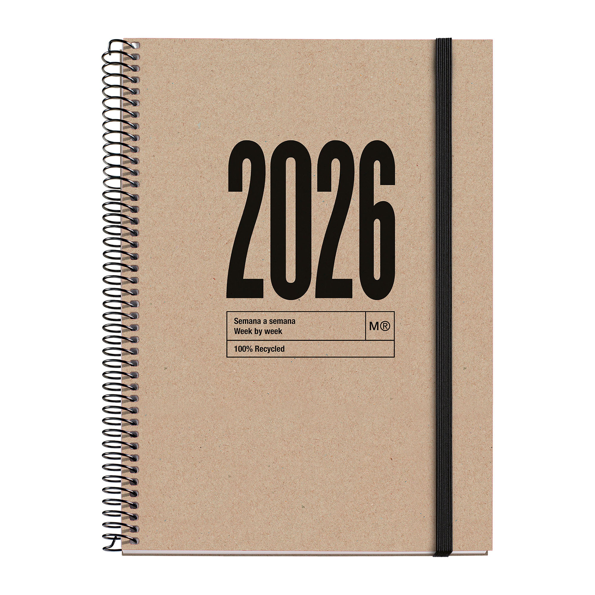 Descripción detalladaCubiertas espiraladas de cartón 100% reciclado.Papel 100% reciclado post-consumo de 80g/m² con certificado Blue Angel y EU Label.Año grabado en seco.Encuadernación espiral.Hojas microperforadas en la esquina para señalar la fecha actual.