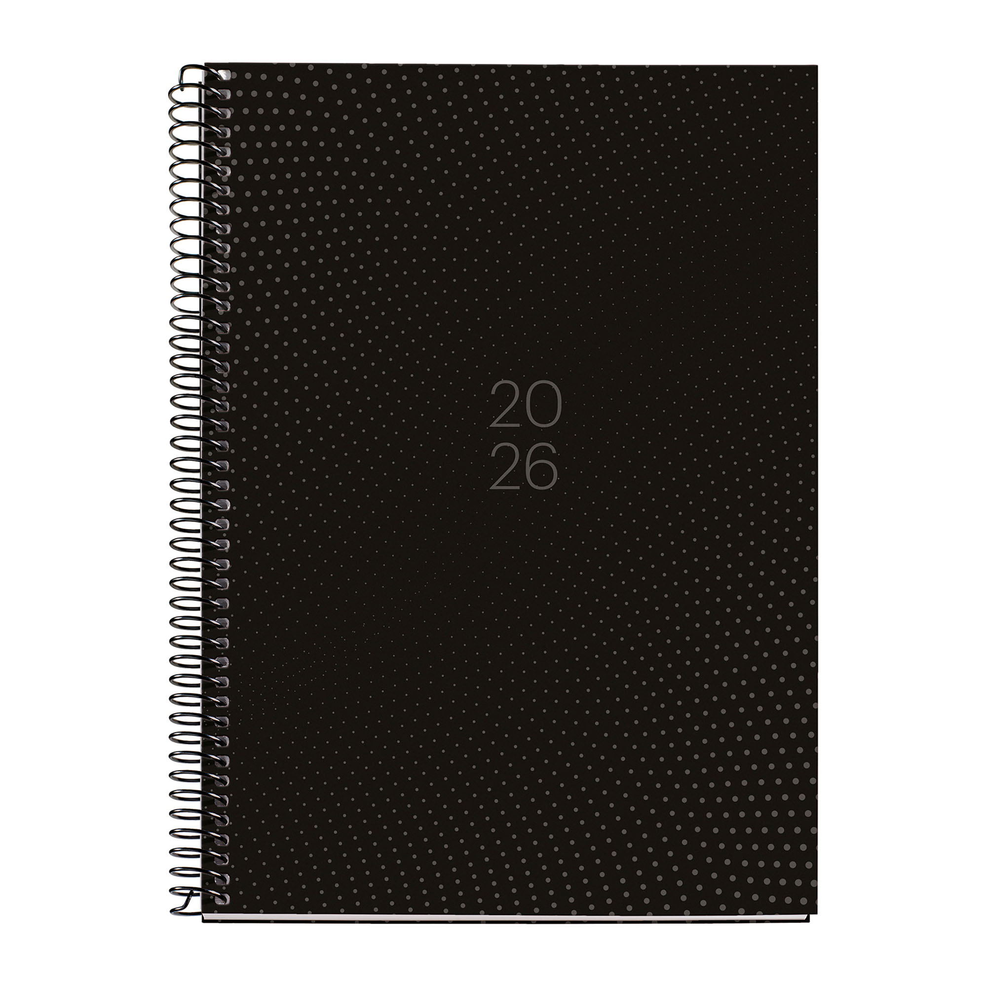 Encuadernación espiral con hojas microperforadas en la esquina para señalar la fecha actual.