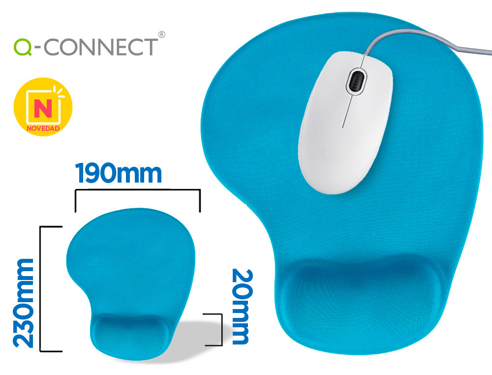 Alfombrilla para ratón q-connect reposamuñecas de gel color turquesa 190x230x20 mm