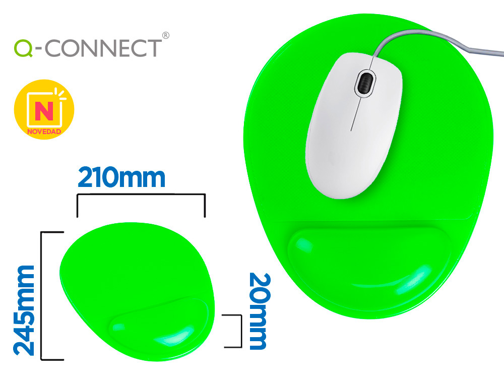 Descripción detalladaAlfombrilla de ratón de PVC con reposamuñecas de gel. Alfombrilla con superficie especialmente diseñada para mejorar el reconocimiento del movimiento del ratón óptico. Diseño ergonómico y base antideslizante. Colores vivos.