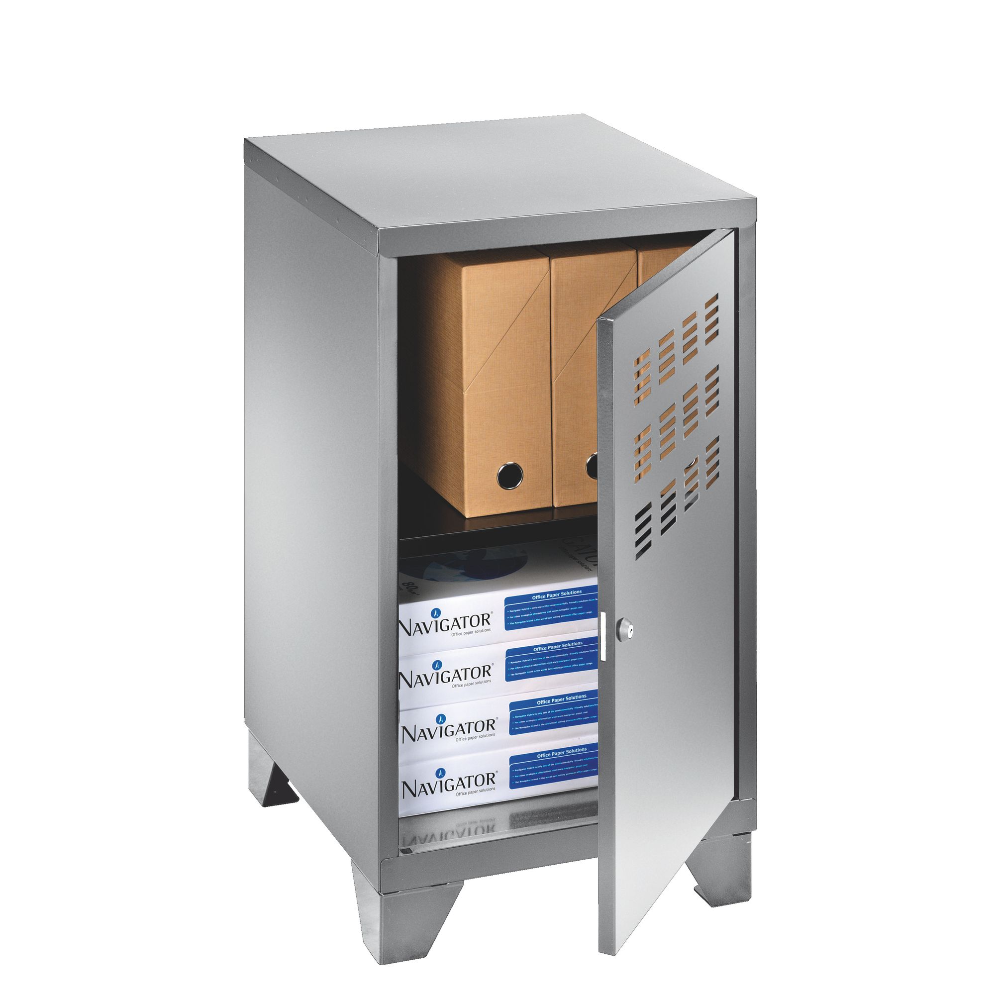 Descripción detalladaMobiliario de oficina: Cajonera de oficina.Estructura: Chapa de acero 8/10º lacado epoxi. Puerta batiente con cerradura ( 2 llaves incluidas).Equipamiento: 1 Balda regulable en altura.Medidas Totales : Alt 74 x An40 x Fon 40 cm