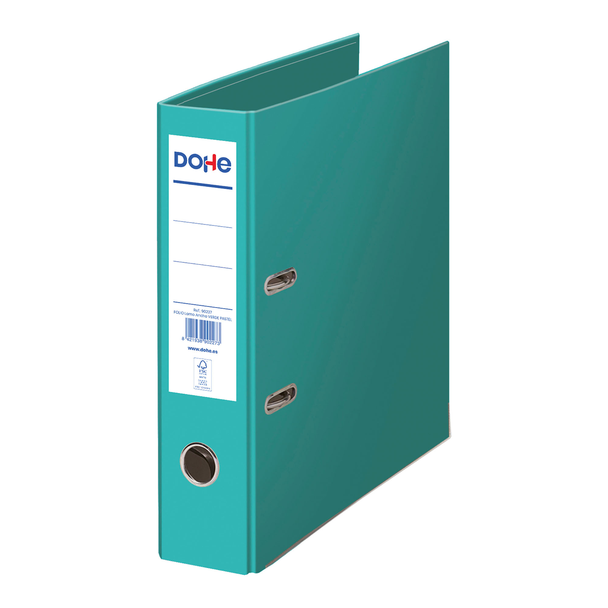Archivador Ecofile fabricado en cartón rígido, forrado con papel offset impreso en color en exterior y en el interior.