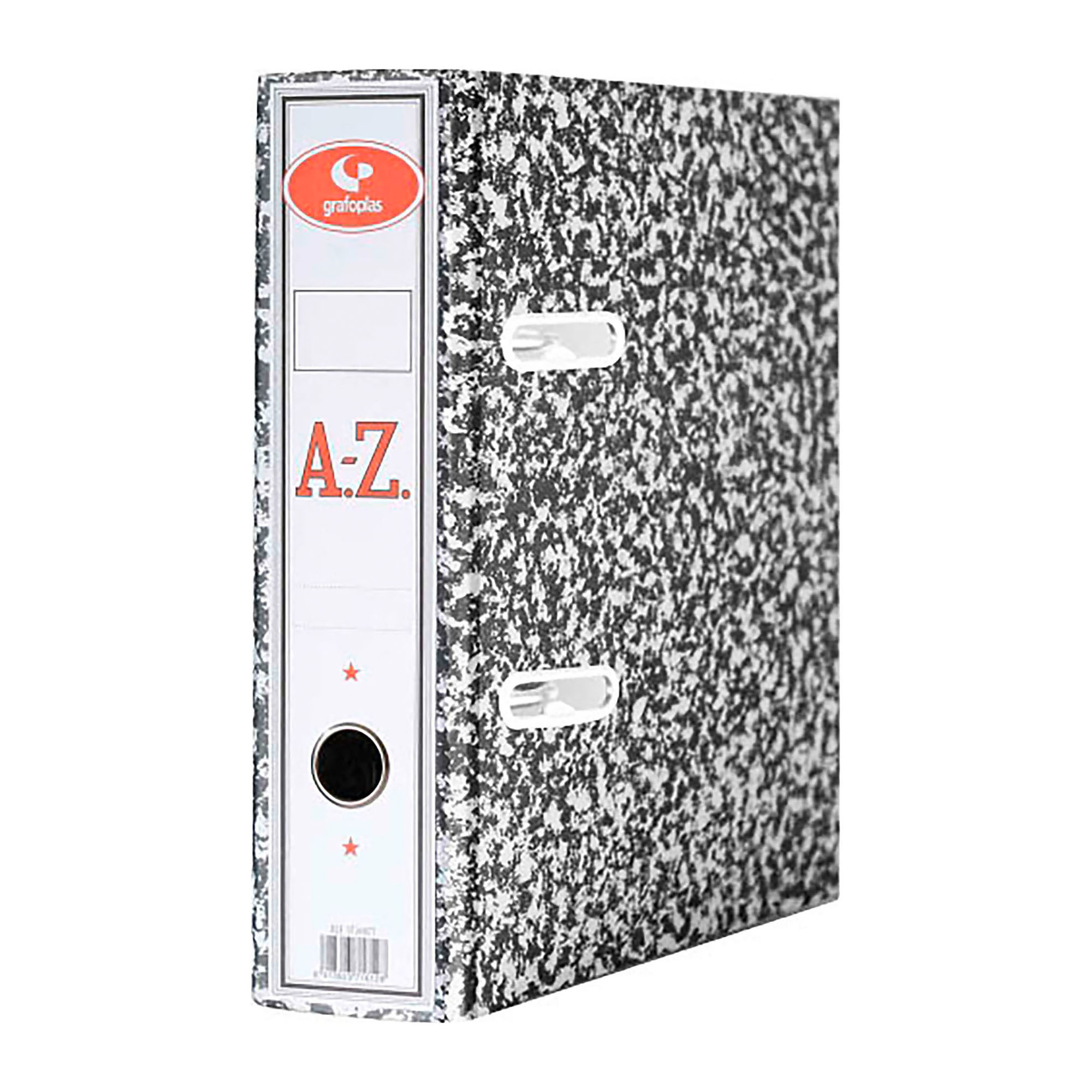 Descripción detalladaArchivador con ranuras, línea Classic Grafoplás. Formato A4.Cartón forrado interior y exterior con papel impreso.Mecanismo de palanca niquelado. Cantonera larga.Ollao en el lomo.Color gris.