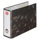 Archivador de palanca color gris jaspeado formato A5 apaisado con rado. Fabricado en cartón forrado de papel. Contiene compresor y ollado metálico en el lomo para una rápida extracción. Dimensiones: Alt. 19,5 X Fon. 28 cm. Lomo de 7,5 cm. El rado es un sistema que garantiza la estabilidad del archivador una vez cerrado, encajando las anillas en las ranuras situadas en la tapas.