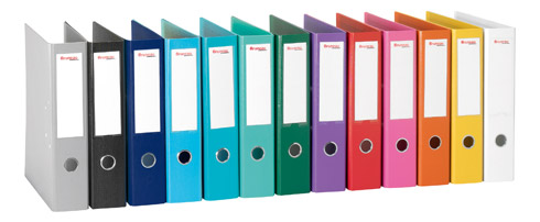 Archivador de palanca en colores fantasía. Fabricado en cartón forrado de polipropileno por fuera (exterior) y por dentro (interior). Cada archivador dispone de cantoneras inferiores metálicas, portaetiquetas (con 1 etiqueta incluida), compresor metálico, ollado metálico en el lomo y rado. El rado es un sistema que garantiza la estabilidad del archivador (una vez cerrado) gracias al encaje de las anillas, en las ranuras situadas en las tapas. Las medidas del formato A4 es de 32 x 28,5 cm. Las medidas del formato Folio es de 35 x 29 cm. Lomo a escoger entre 5 o 7,5 cm. Surtido de 10 archivadores: azul cielo, turquesa, verde menta, violeta y fucsia.