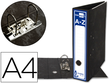 Descripción detalladaArchivador de cartón entrecolado de 1,9 mm de espesor forrado interior y exterior. Mecanismo de palanca niquelado de 75 mm, compresor metálico, ollao y cantoneras largas. Lomo ancho. Sin índice, cajetín opcional. Ancho de lomo: 80 mm.