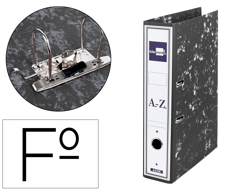 Descripción detalladaArchivador de cartón entrecolado de 1,9 mm de espesor forrado interior y exterior. Mecanismo de palanca niquelado. Compresor metálico, ollao y cantoneras largas. Lomo ancho. Con Rado®. Sin caja.