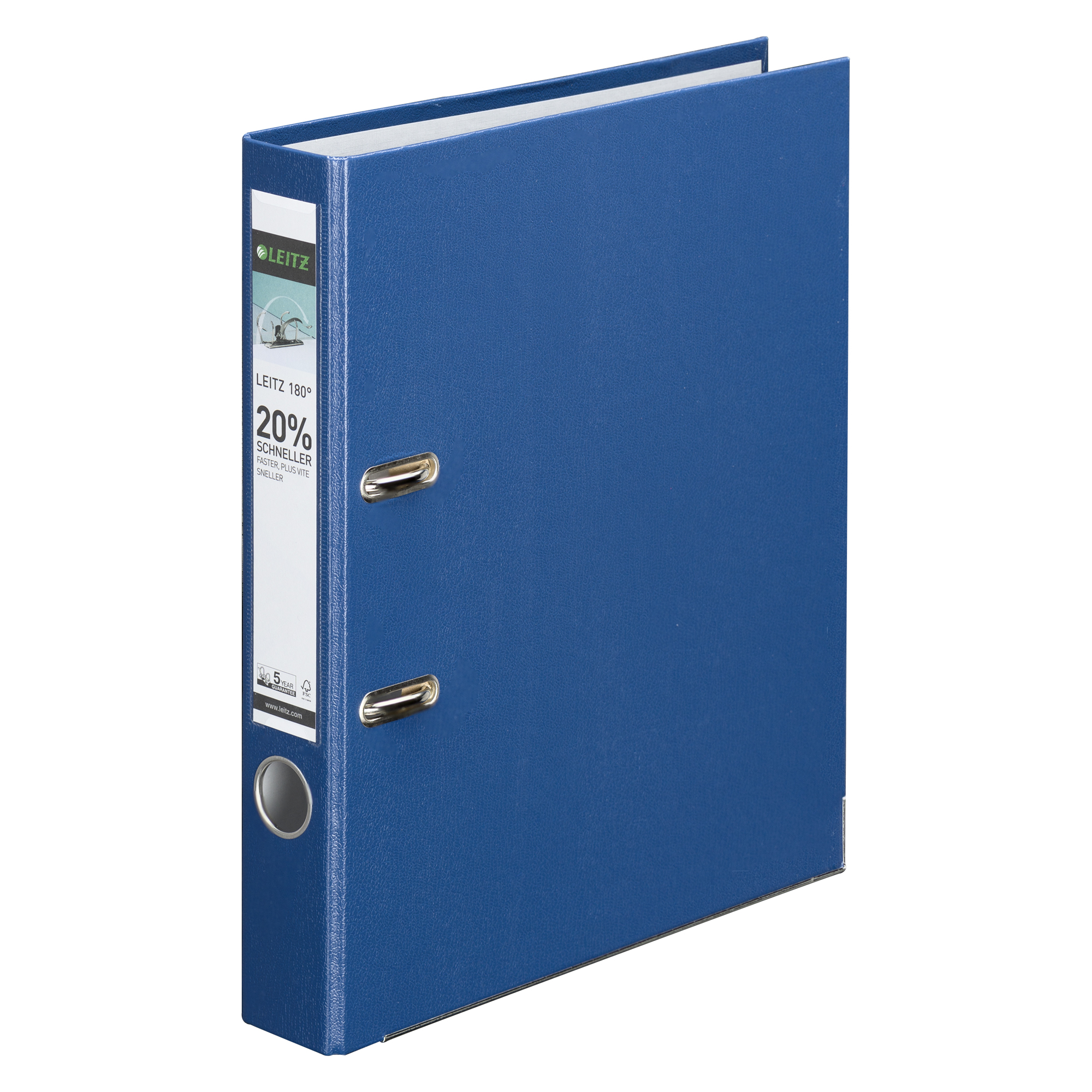 Archivador de cartón de 220 g recubierto de polipropileno. Mecanismo con garantía de 15.000 aperturas/cierres. Bordes interiores y ojal de agarre de metal. Porta-etiquetas con etiqueta extraíble. Formato A4. Medidas: 32 x 29,5 cm. Lomo de 5 cm. 5 colores a elegir (blanco, azul, negro, rojo, verde).