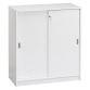 Para clasificar eficientemente sus carpetas, documentos, cajas de archivo, carpetas u otros suministros. La robusta estructura de este mueble de almacenaje está fabricada en tablero de partículas melamínico efecto madera de 16 mm de espesor. Puertas correderas con tirador encastrado y cerradura (se proporcionan 2 llaves). Interior con estantes (22 mm de grosor) regulables en 5 niveles. Dimensiones: Alto 100 x Ancho 90 (86,5 útiles) x Fondo 44 (36 útiles) cm.