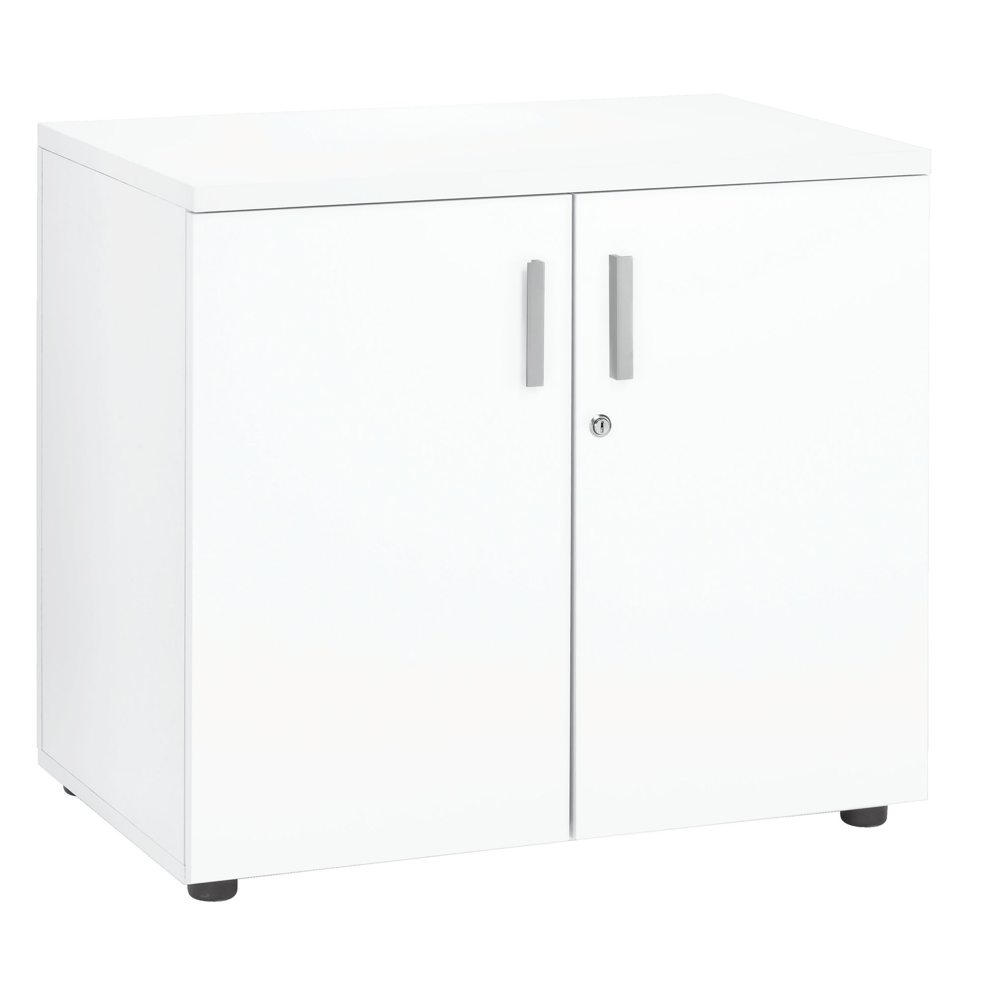 Puertas batientes con cerradura de 3 puntos (incluye 2 llaves). 1 balda interior regulable en altura cada 32 mm. Tiradores de metal color aluminio.