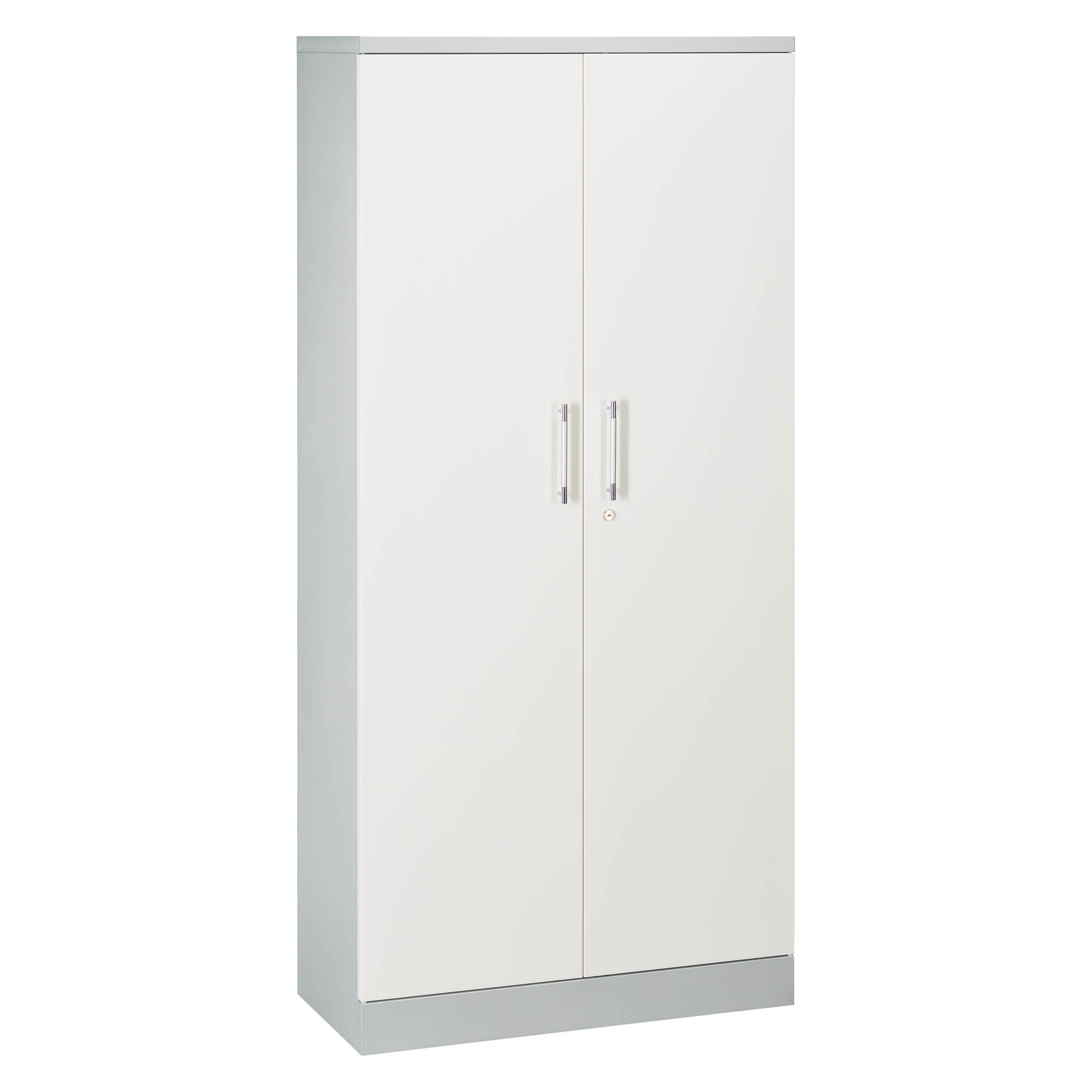 Armario de estructura en chapa de acero 7/10e epoxi texturizado con acabado aluminio. Resistente a golpes y rayaduras. Puertas batientes con apertura de 270º para una mejor visibilidad y un acceso fácil al contenido. Tiradores ultrarresistentes. Cerradura (2 llaves suministradas). Interior equipado con 3 baldas metálicas con rebordes para carpetas colgantes. Regulables en altura cada 4,5 cm.