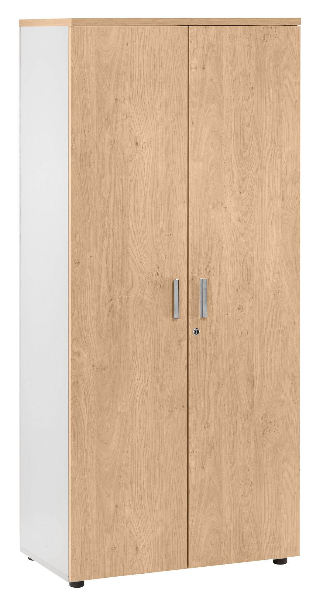 Descripción detalladaEstructura de paneles de particulas melaminadas. Puertas batientes con cerradura ( 2 llaves incluido). Tiradores de metal acabado aluminio cepillado. Medidas: Alt 180 cm con 4 baldas : 3 fijos y 1 regulable en altura. An 80 x Fon 47 cm.