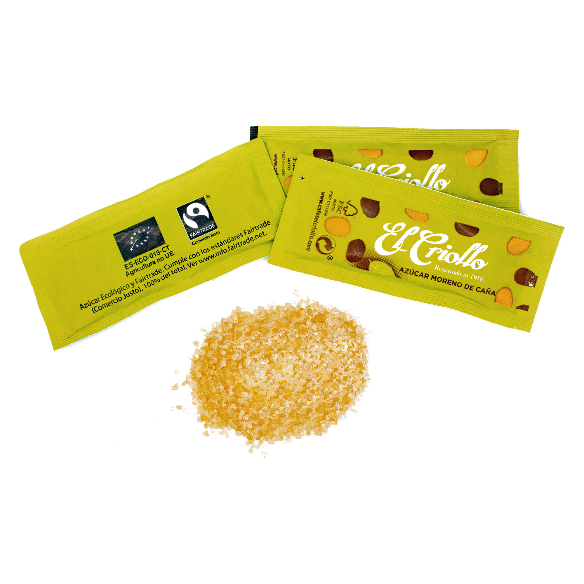 Descripción detalladaAzúcar moreno de caña ecológica con certificado Fairtrade de comercio justo.Caja de 400 sticks.