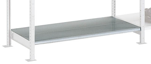 Descripción detalladaLote de 2 baldas ( en 2 partes cada una) de chapa galvanizada grosor 8/10º regulables en altura cada 2,5cm. Soporta hasta 210 kg por balda. Fondo 40 cm.