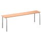 Asiento en melamina de haya de 19 mm de espesor, acabado barniz natural, con canto de ABS de 2 mm. Estructura tubular Ø 25 mm, espesor 1,5 mm, en acero, color gris. Tacos de polímero negro que no deja marcas ni rayas. Apilable. Dimensiones del asiento: An 160 x Fon 25,5 cm. Altura 46 cm (Talla 6).
