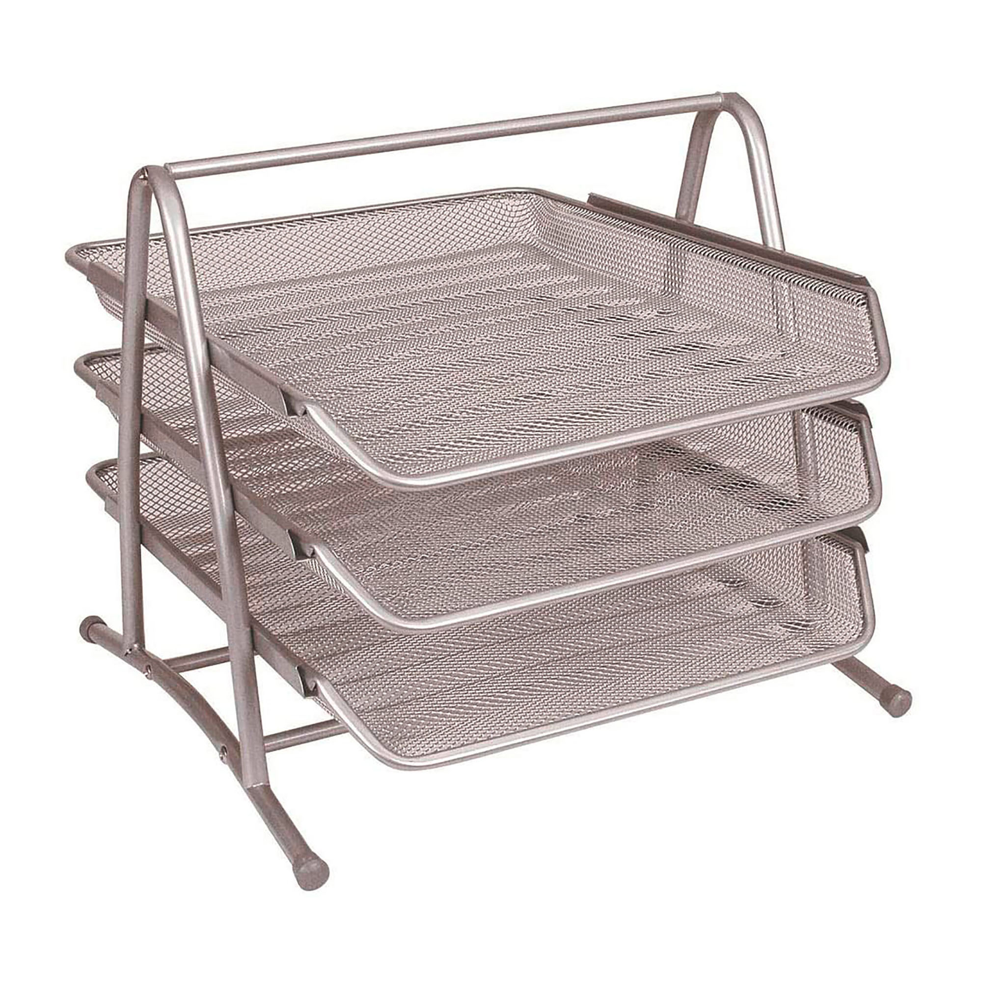 Descripción detalladaConjunto de 3 bandejas de correo móviles metálicas de rejilla. Medidas: 350 x 278 x 275 mm