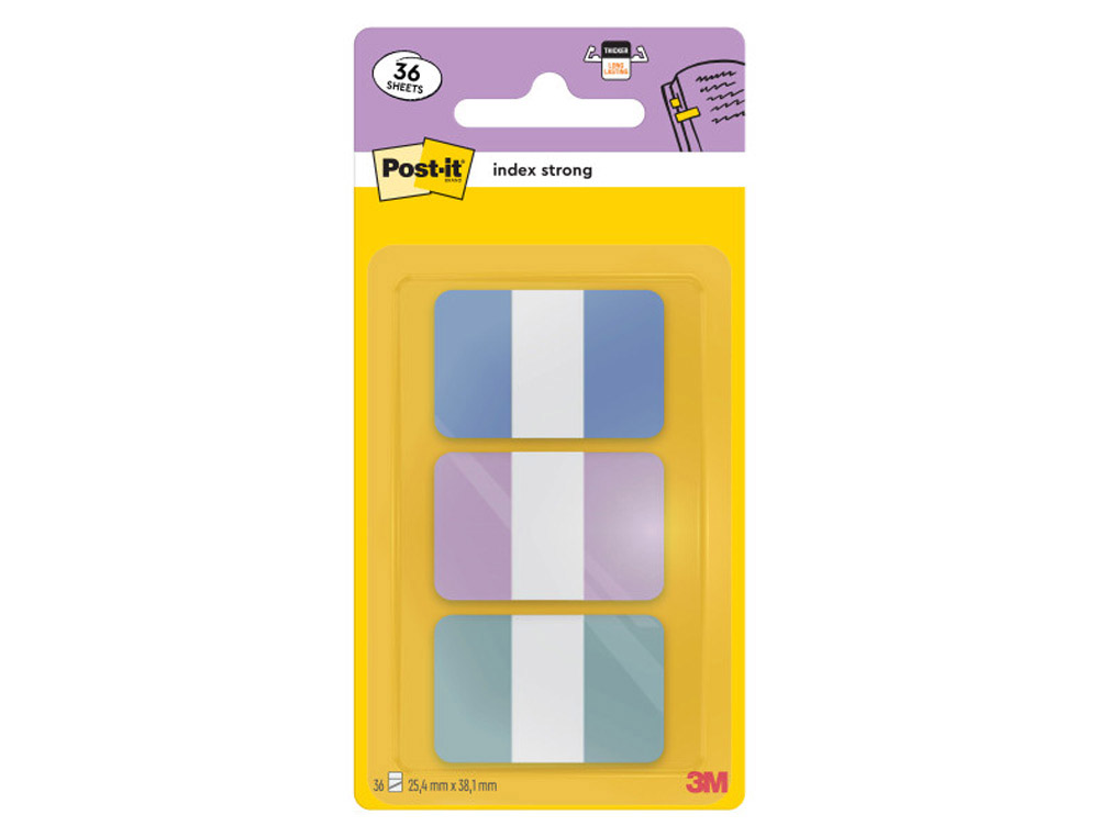 Banderitas separadoras rigidas dispensador post-it index strong 686-3 coast 25,4x38.1 mm pack de 36