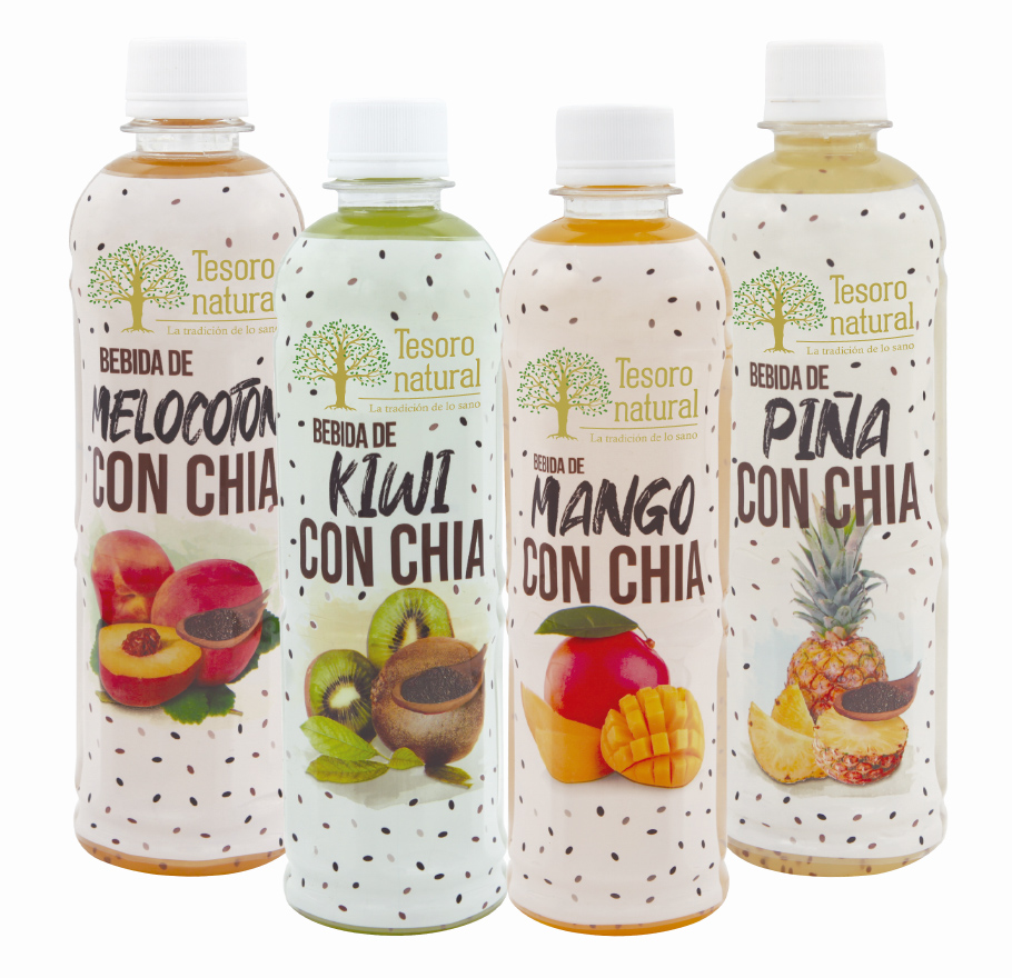 Bebida Piña con Chía de la marca Tesoro Natural en formato botella de plástico de 450ml.