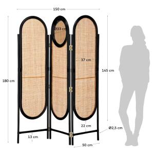 El biombo Lalita es un diseño made in Kave Home, sostenible y exclusiva, ya que está hecho con ratán, una fibra natural que está curvada y trenzada a mano. La rejilla de los frontales deja pasar parcialmente la luz y, así, mantener la luminosidad.