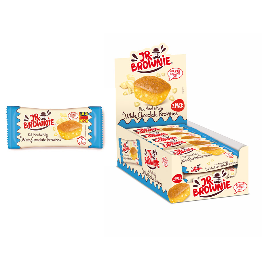 Brownie Chocolate de 50g Mr Brownie, esponjosos brownies con un ligero sabor a vainilla, y cremosas chips de chocolate blanco, que se derretirán en tu paladar.