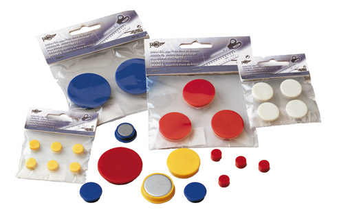 Descripción detalladaImanes redondos 30 mm. de diámetro, presentados en bolsa blister de 3 unidades unicolor - 100% reciclables