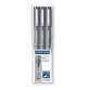 Tinta pigmentada indeleble de secado rápido, resistente al agua y a al luz. Tinta negra. Blister 3 unidades 0,2mm - 0,4mm - 0,8mm.