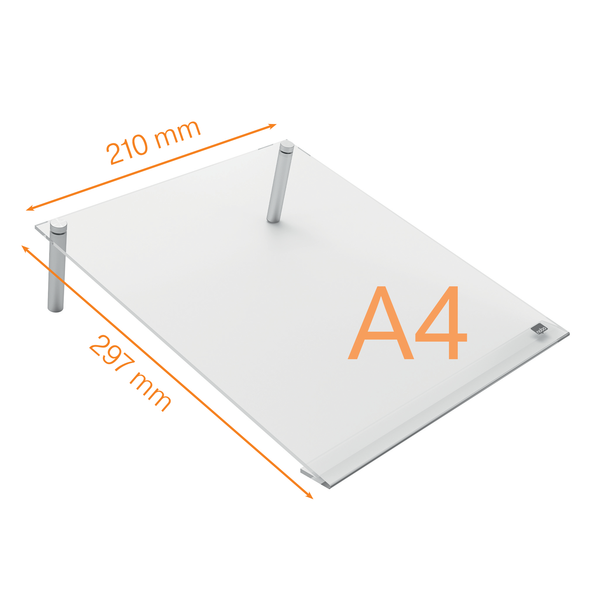 Este bloc de notas en ángulo de pizarra blanca para oficina en casa con un diseño contemporáneo sin marco es perfecto para tomar notas, capturar pensamientos, ideas o fechas clave. El mini bloc de notas de acrílico transparente para pizarra está inclinado con elegantes soportes para ofrecer una posición de escritura óptima. Se adapta perfectamente a cualquier escritorio o superficie de trabajo y, con el diseño transparente, el tablero de notas se integra a la perfección con el fondo cuando no está en uso. La superficie acrílica transparente de borrado en seco se puede limpiar fácilmente, así que simplemente escribe, limpia y comienza de nuevo. Se suministra con un rotulador de pizarra. Tamaño A4.