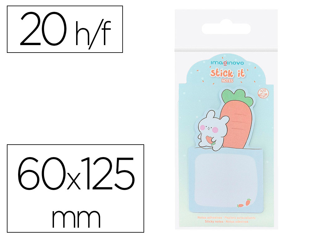 Bloc notas adhesivas imaginovo bunny con soporte 20 hojas azul 60x125 mm