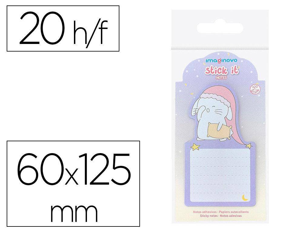 Haz que las tareas y recordatorios sean más divertidos con las notas adhesivas Imaginovo. Con un diseño fantasía, estas notas son ideales para niños, añadiendo un toque de creatividad y color a cualquier actividad. Características: 20 notas adhesivas. 60x125 mm. Con soporte.