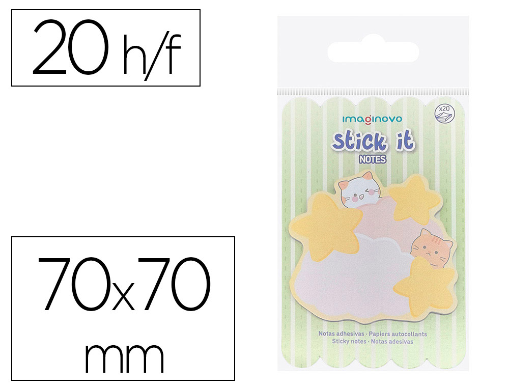 Haz que las tareas y recordatorios sean más divertidos con las notas adhesivas Imaginovo. Con un diseño fantasía, estas notas son ideales para niños, añadiendo un toque de creatividad y color a cualquier actividad. Características: 20 notas adhesivas. 70x70 mm. Nubes.