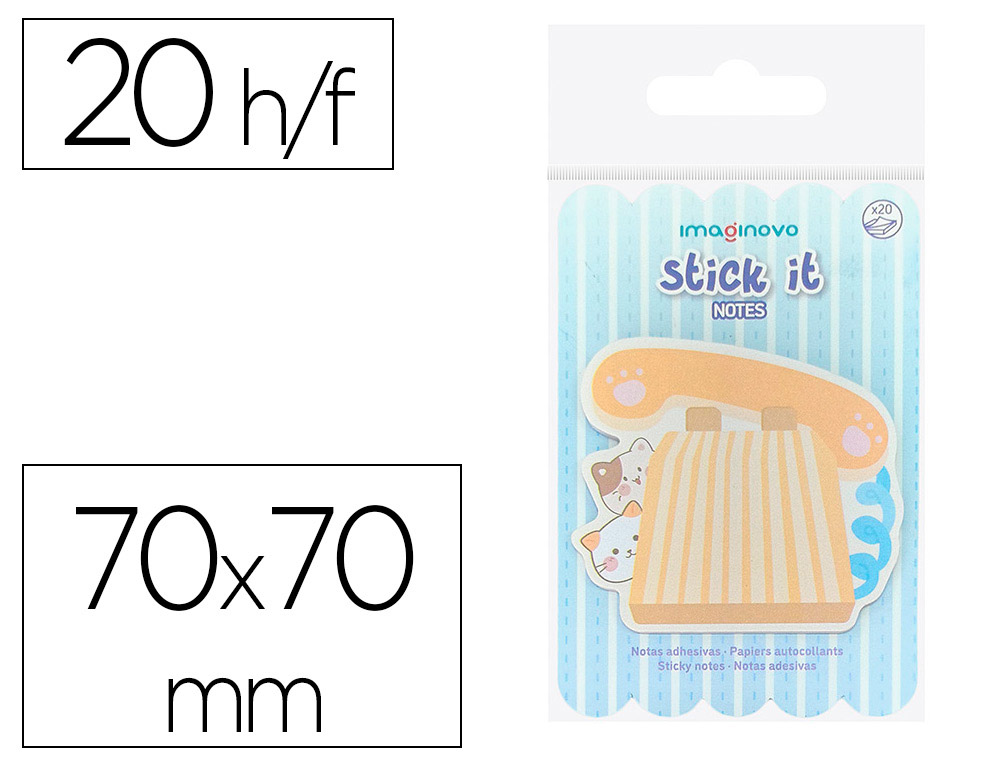 Haz que las tareas y recordatorios sean más divertidos con las notas adhesivas Imaginovo. Con un diseño fantasía, estas notas son ideales para niños, añadiendo un toque de creatividad y color a cualquier actividad. Características: 20 notas adhesivas. 70x70 mm. Teléfono.