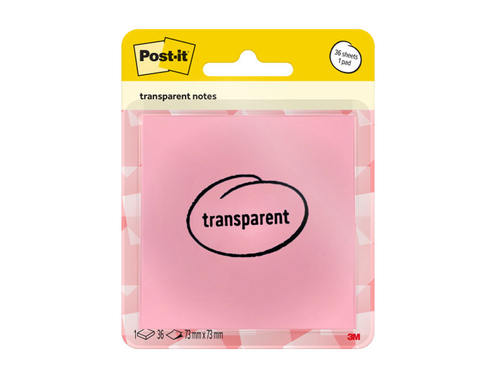Bloc de notas adhesivas quita y pon post-it 73x73 mm 36 hojas transparente salmón