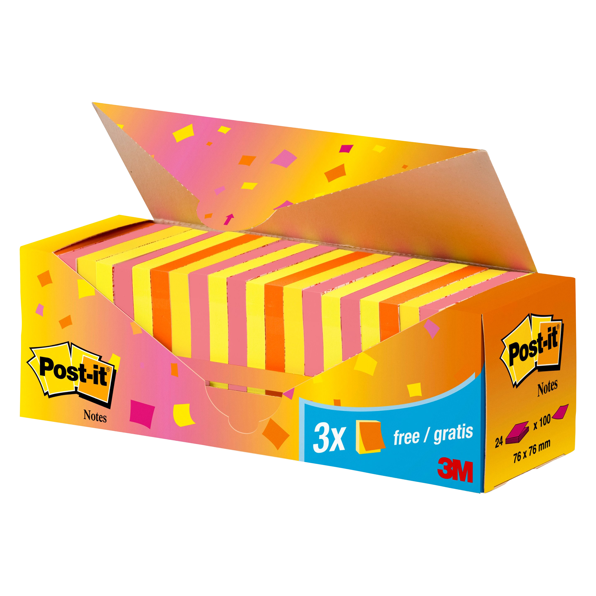 Descripción detalladaNotas Post-it de 76 x 76 mm. Colores surtidos. Adhesivas reposicionables están hechas 100% de fibra de papel certificado PEFC. Ideal para dejar mensajes y recordatorios. * Los 3 blocs GRATIS serán del mismo color que el resto de la caja.