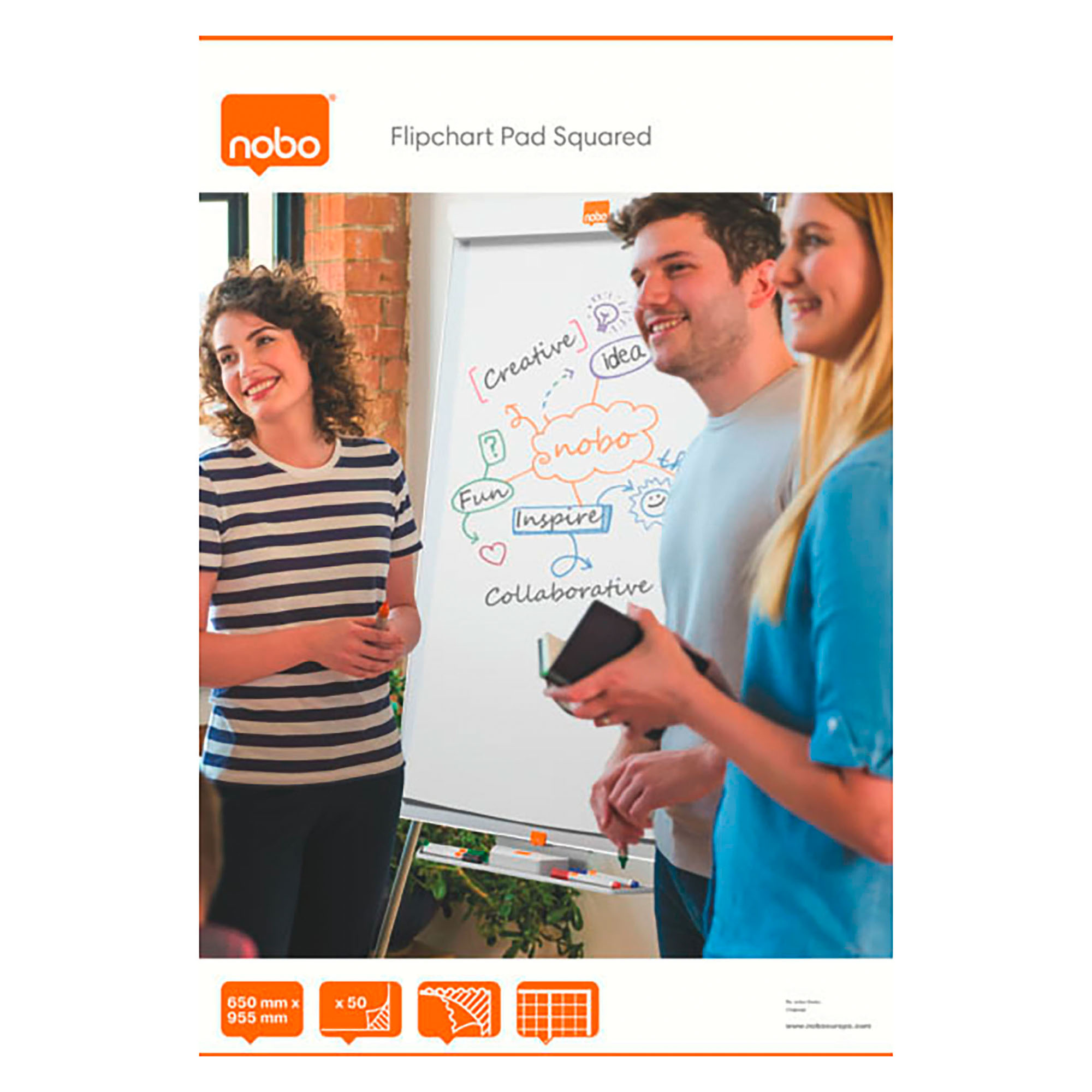 Mejora tu comunicación en tus reuniones con el block de papel Nobo. Lo esencial de tus presentaciones o sesiones de lluvia de ideas es visible en tu caballete de conferencias. Sus 50 hojas de papel cuadriculado de 60 g/m² son reversibles y precortadas para facilitar su uso.