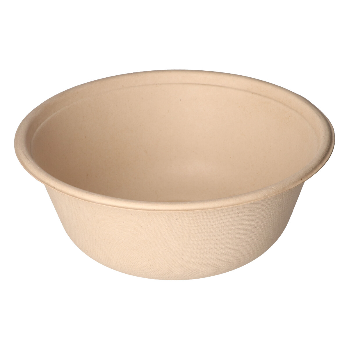 Bol de bagazo kraft con capacidad de 1500 ml, hecho de fibra de caña de azúcar compostable.