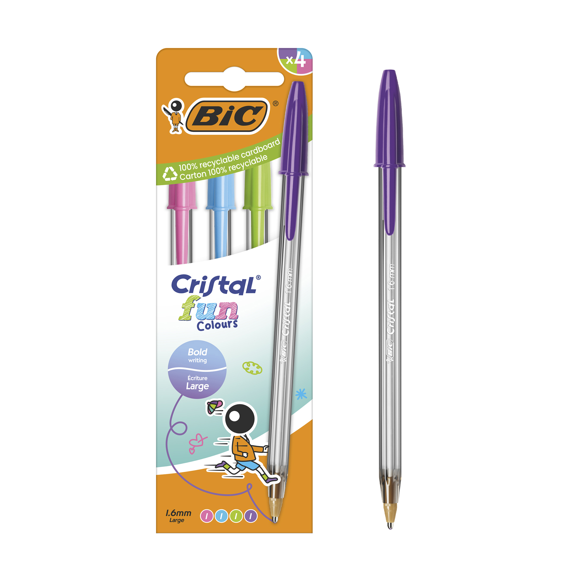 Bolígrafo Bic Cristal Fashion Punta 1,6 mm - Paquete de 4