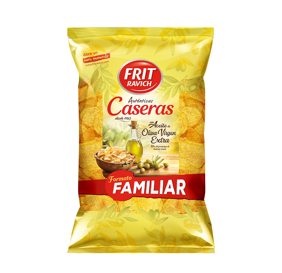 Descripción detalladaPatatas fritas con aceite de oliva virgen extra (30% del porcentaje de materias grasas).IngredientesPatatas seleccionadas, aceites vegetales (aceite de girasol (70%), aceite de oliva virgen extra (30%)), sal