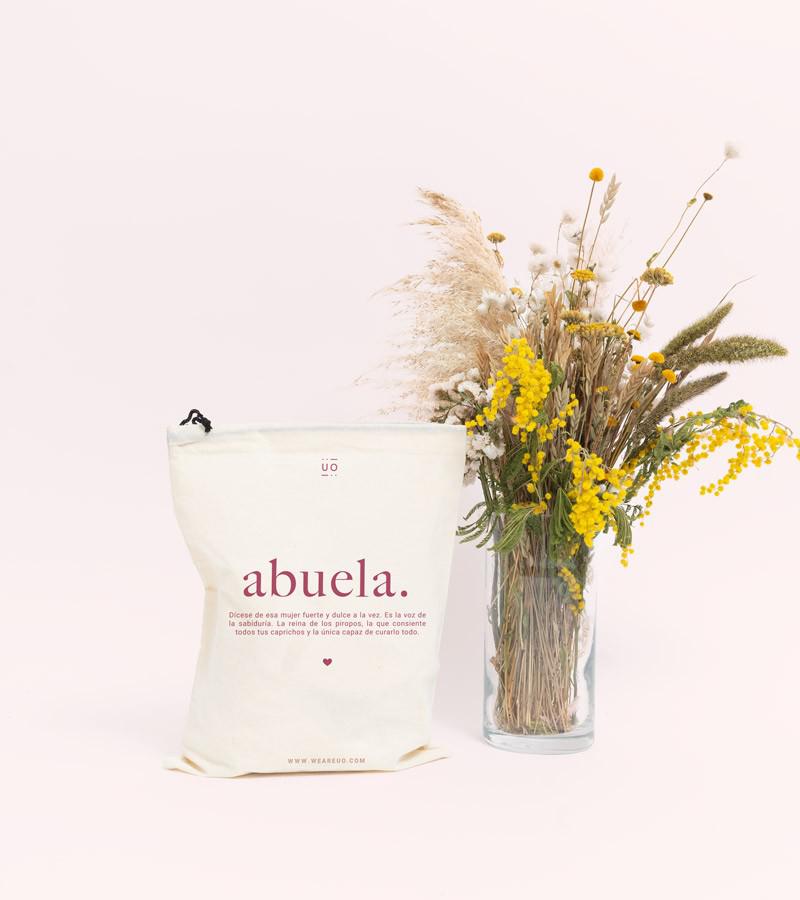 Descripción detalladaUn regalo siempre son las manos que lo entregan pero si viene con un envoltorio bonito, ¡suma puntos! Una bolsita 100% algodón con la bonita definición de abuela es de esos regalos que suman.