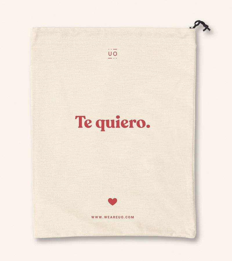Descripción detalladaBolsa de tela para envolver un regalo de forma original y recordarle cuánto le quieres. ¡Además podrá reutilizarla para mil cosas! Bolsa 100% de algodón.