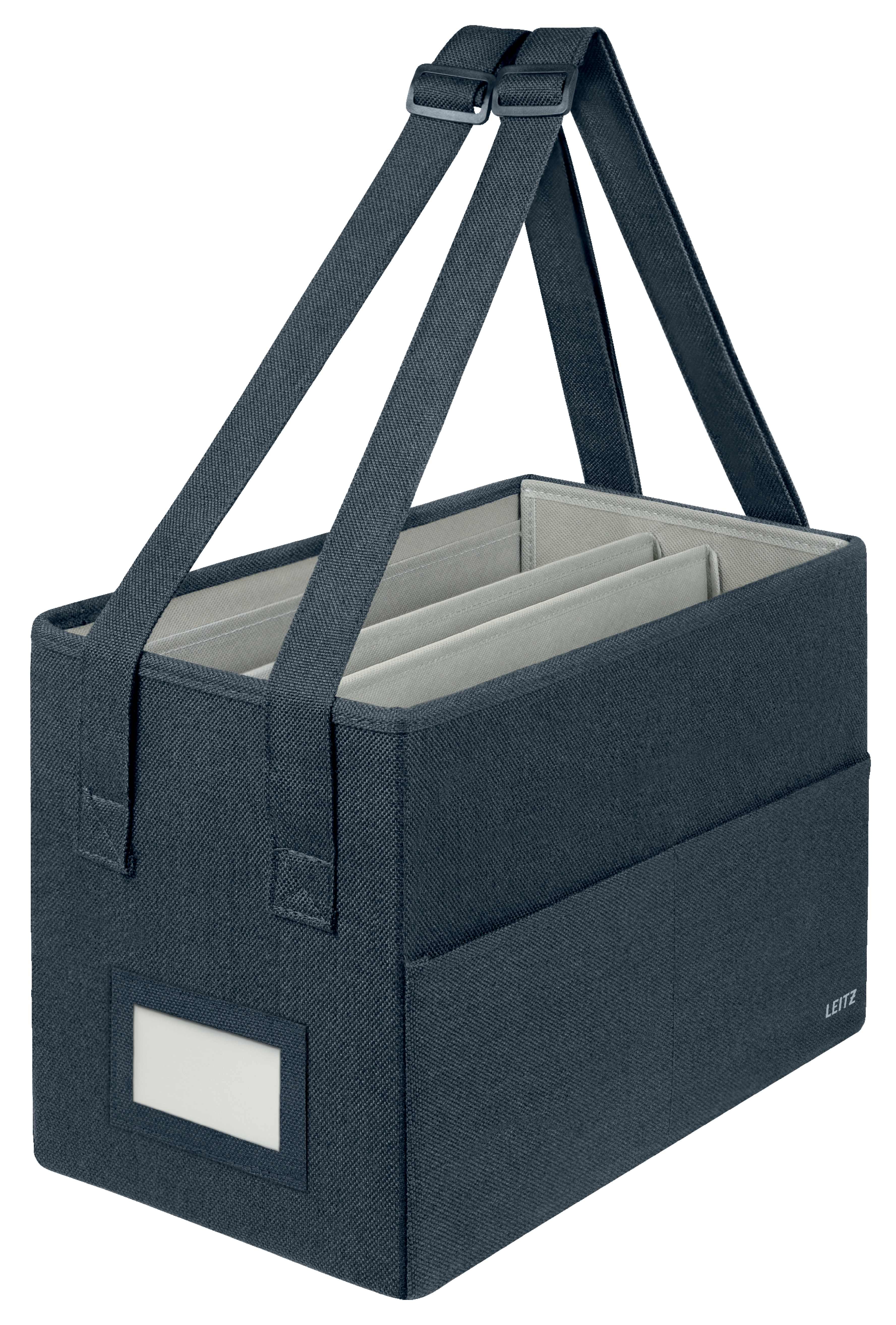 Siéntete como en casa allá donde te lleve el día con la gama de almacenamiento textil de Leitz. Con su diseño minimalista y su atractivo acabado en terciopelo gris mate, puedes estar elegante y al mismo tiempo organizado en la oficina, en casa, trabajando de forma híbrida o en cualquier lugar. La Bolsa de tela para el trabajo con tapa compacta Leitz para Hot Desking tiene tres compartimentos separados que te permiten guardar y llevar todo lo que necesitas para el día que tienes por delante. Esta moderna y práctica bolsa de almacenamiento tiene suficiente espacio para guardar un portátil de hasta 14'', un teclado compacto, un ratón, un cable de carga, unos auriculares, una libreta y una botella de agua. Equipado con una tapa que protege el contenido del polvo o derrames accidentales, y ayuda a mantener la privacidad y confidencialidad. Cabe en taquillas o armarios con unas dimensiones mínimas de 37x 21 cm y una altura de 24 cm. También es adecuado como bolsa para profesores. Fabricado con material suave reforzado con cartón reciclado para mayor resistencia y durabilidad. En total 57% de material reciclado. Cuando no se utiliza, la bolsa es totalmente plegable, por lo que se puede guardar fácilmente. La etiqueta de nombre incluida con la bolsa te permite identificarla fácilmente en espacios compartidos. Esta bolsa para hot desking, con asas de longitud ajustable, es el complemento perfecto para tu hogar, oficina o escuela, para garantizar que te mantengas relajado y productivo durante todo el día.