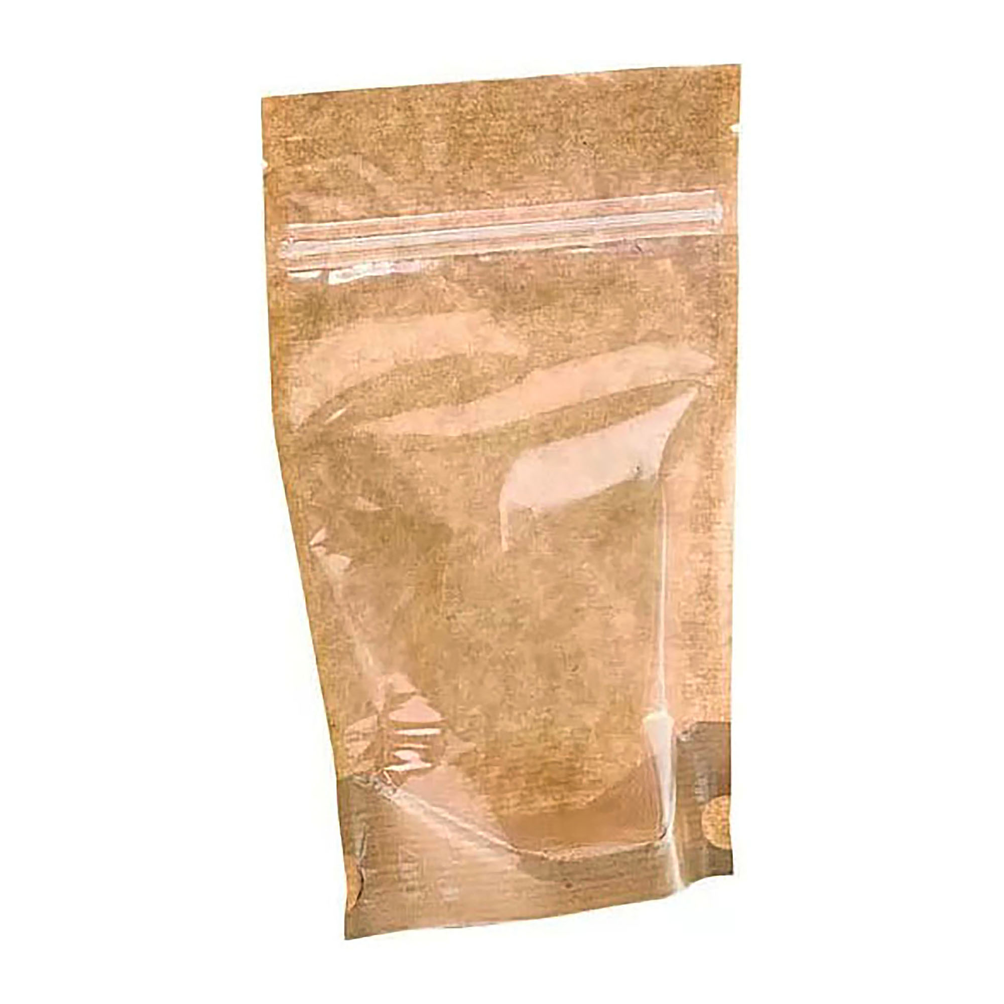 Opte por nuestra bolsa de pie de kraft transparente, ideal para el almacenamiento y la presentación de sus productos. Con unas dimensiones de 15 x 22 cm, está fabricada en plástico de calidad con un gramaje de 63,8 g, garantizando una resistencia adecuada. 100 % reciclable, esta bolsa es perfecta para los profesionales del sector horeca que desean combinar practicidad y respeto al medio ambiente. Su diseño con cierre de cremallera asegura una protección óptima para sus alimentos. Paquete de 200 unidades.